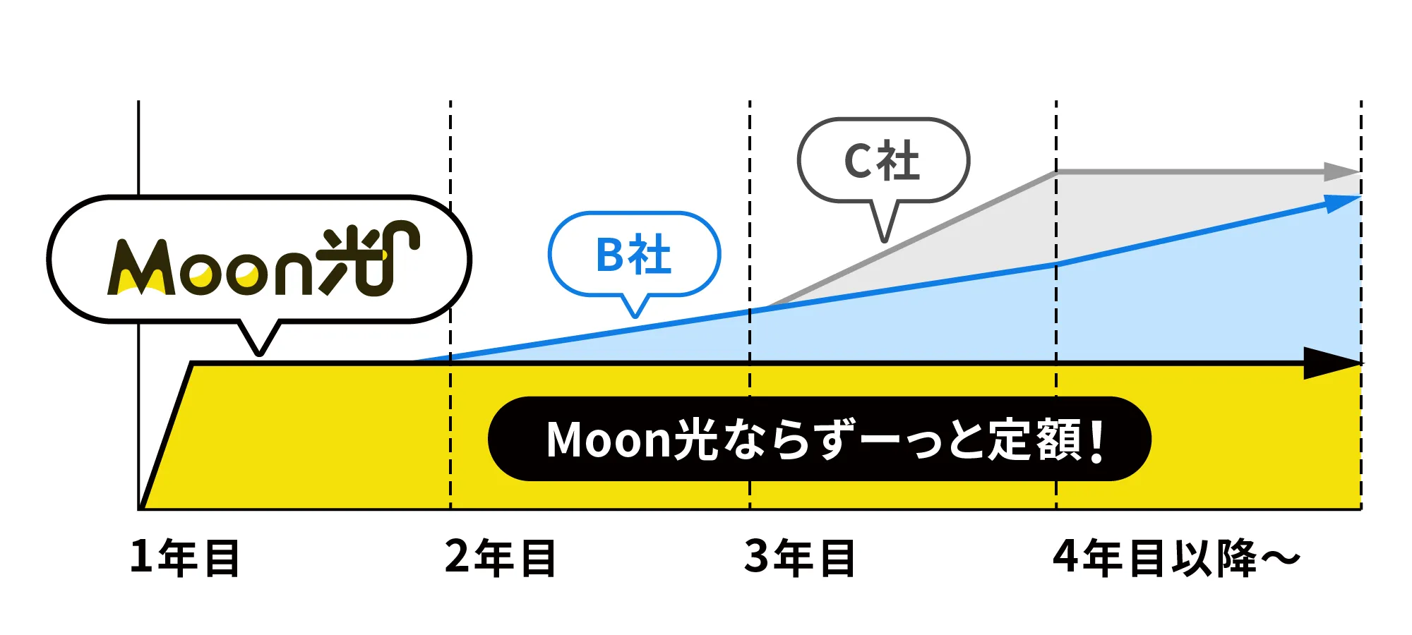 『Moon光』の月額料金はずーっと変わらず一定なので、シンプルで安心してご使用いただける固定料金プランです。